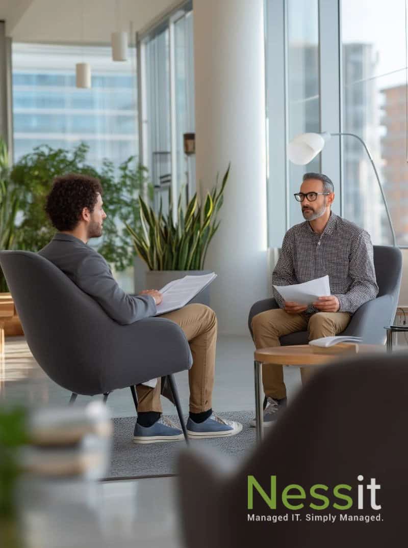 Team collaborating on IT solutions, showcasing IT Services for Mid-Sized Businesses with a people-first approach.